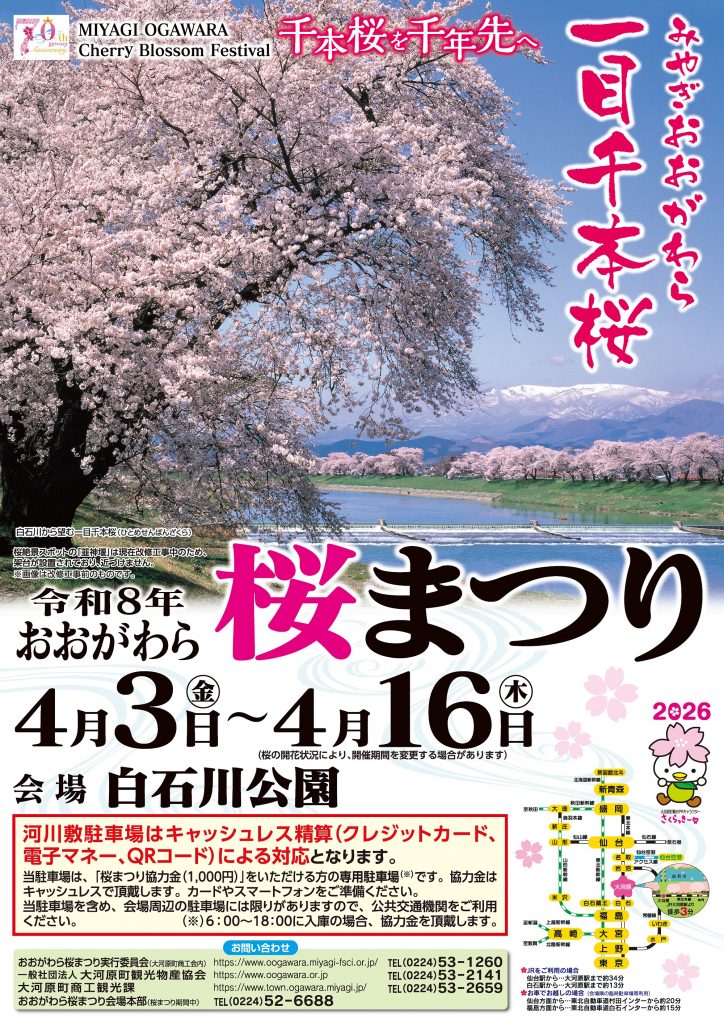 「一目千本桜のまち 大河原」では、今年も「おおがわら桜まつり」を開催するよ~!
